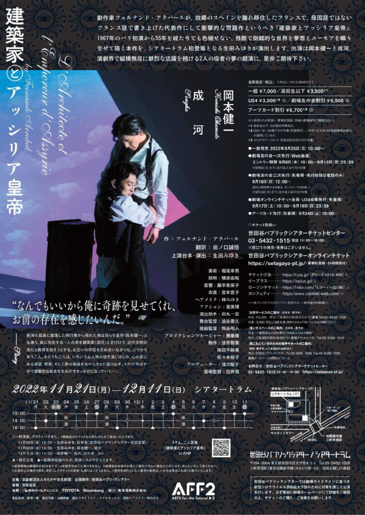 2022年の上演は、世田谷パブリックシアター主催による「トラム、二人芝居」企画の第二弾として実現した。同企画の第一弾として8月から9月にかけて『毛皮のヴィーナス』が上演されており、『建築家とアッシリア皇帝』はその後続作品として位置づけられた。