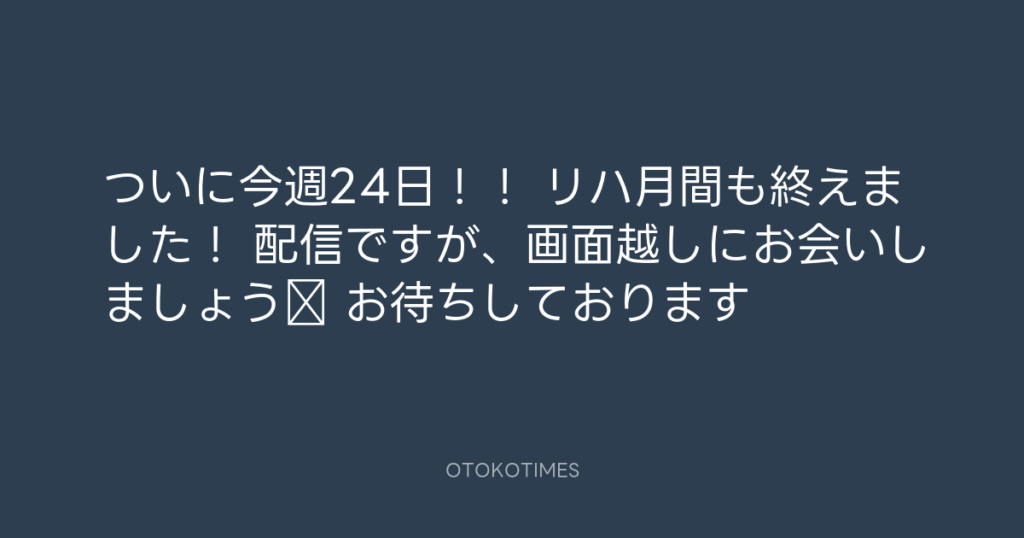 ついに今週24日!! リハ月間も終えました! 配信ですが、画面越しにお会いしまし... -