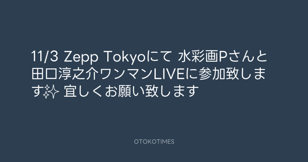 11/3 Zepp Tokyoにて 水彩画Pさんと田口淳之介ワンマンLIVEに参加致します✨ 宜し... -