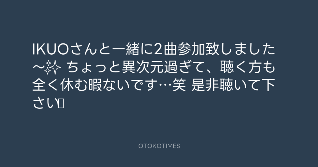 IKUOさんと一緒に2曲参加致しました〜✨ ちょっと異次元過ぎて、聴く方も全く休む... -