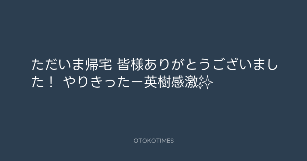 ただいま帰宅🚐 皆様ありがとうございました! やりきったー🔥英樹感激✨ -