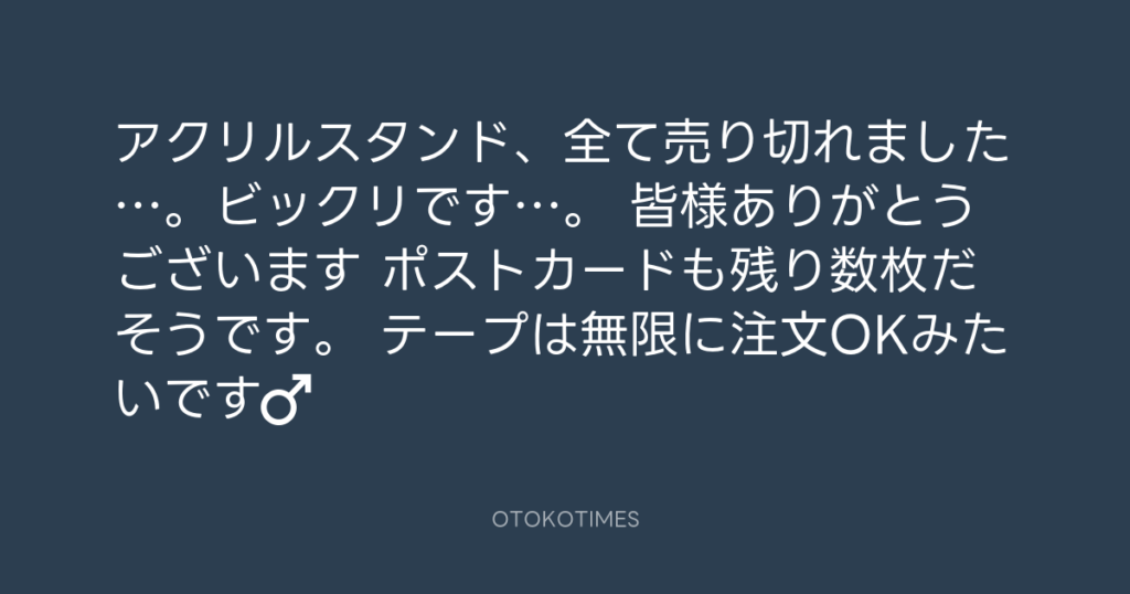 アクリルスタンド、全て売り切れました…。ビックリです…。 皆様ありがとうございま... -