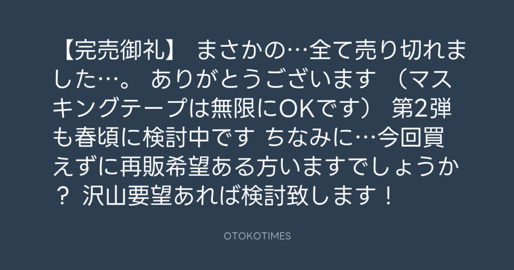 【完売御礼】 まさかの…全て売り切れました…。 ありがとうございます😭 (マスキン... -