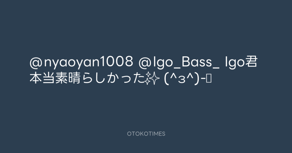 @nyaoyan1008 @Igo_Bass_ Igo君本当素晴らしかった✨ (^з^)-☆