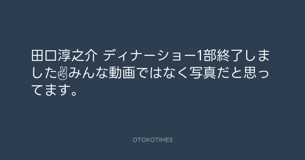 田口淳之介 ディナーショー1部終了しました✌️ みんな動画ではなく写真だと思ってま... -