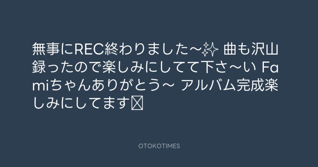 無事にREC終わりました〜✨ 曲も沢山録ったので楽しみにしてて下さ〜い👍 Famiちゃ... -