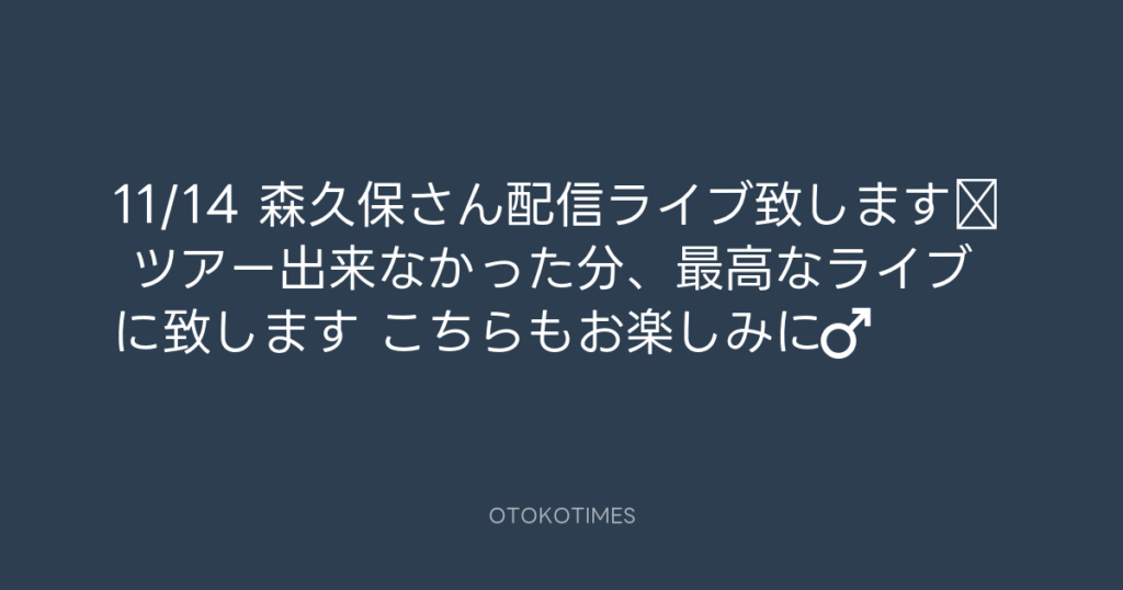 11/14 森久保さん配信ライブ致します‼️ ツアー出来なかった分、最高なライブに致し... -