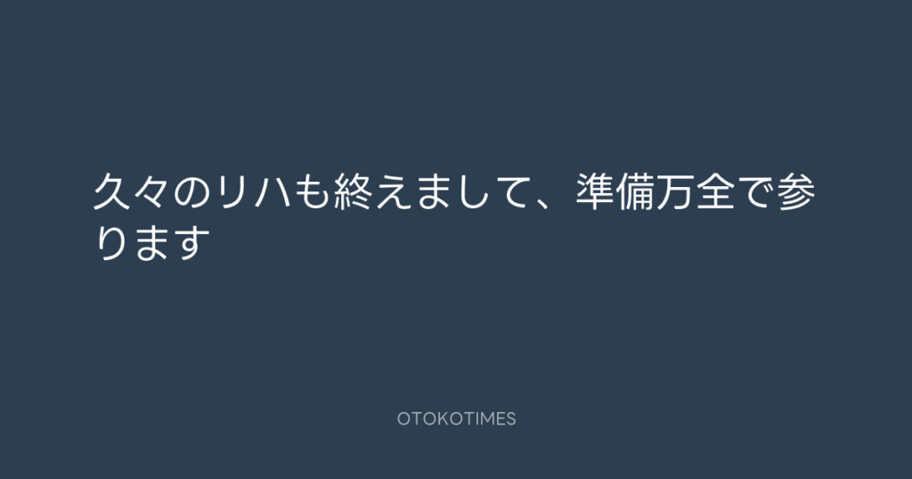 久々のリハも終えまして、準備万全で参ります👍 -