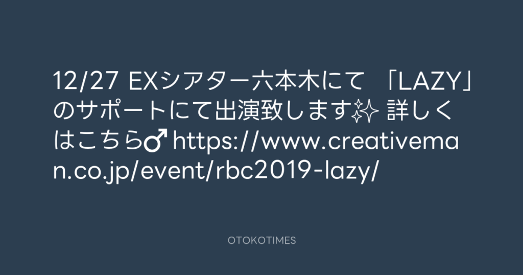 12/27 EXシアター六本木にて 「LAZY」のサポートにて出演致します✨ 詳しくはこち...