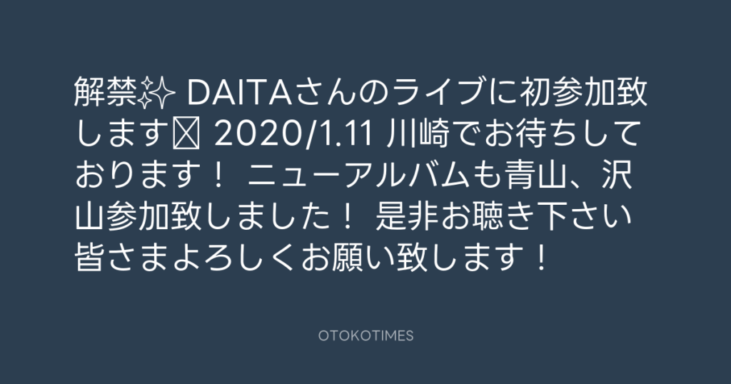 解禁✨ DAITAさんのライブに初参加致します‼️ 2020/1.11 川崎でお待ちしております... -