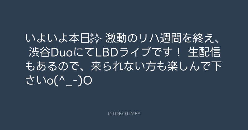 いよいよ本日✨ 激動のリハ週間を終え、 渋谷DuoにてLBDライブです! 生配信もある... -
