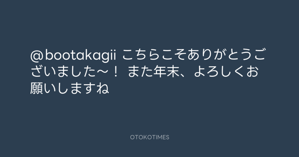 @bootakagii こちらこそありがとうございました〜! また年末、よろしくお願いしま... -