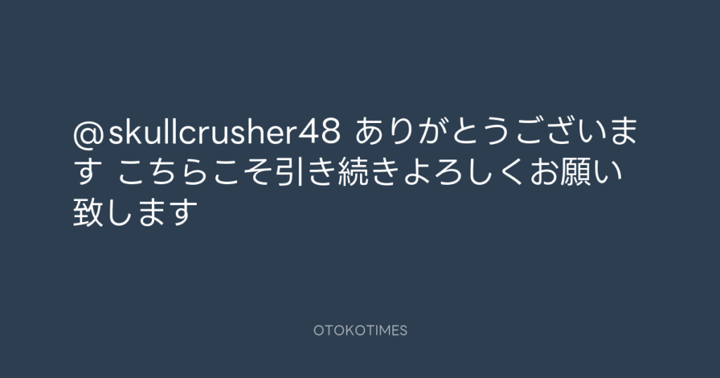 @skullcrusher48 ありがとうございます😊 こちらこそ引き続きよろしくお願い致しま... -