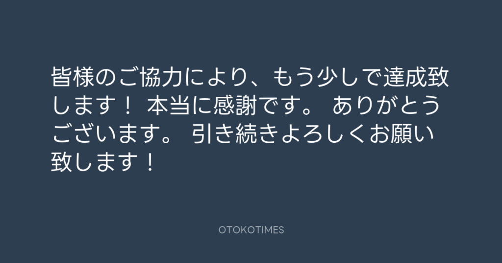 皆様のご協力により、もう少しで達成致します! 本当に感謝です。 ありがとうござ... -