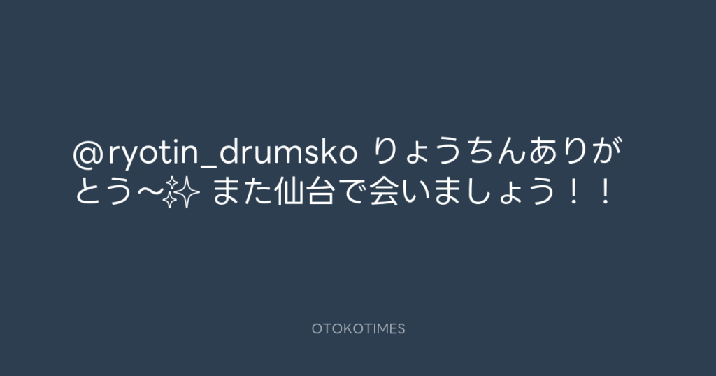 @ryotin_drumsko りょうちんありがとう〜✨🍖 また仙台で会いましょう!! -