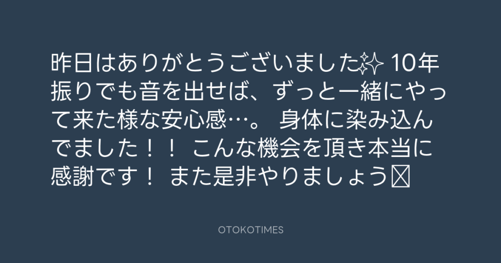 昨日はありがとうございました✨ 10年振りでも音を出せば、ずっと一緒にやって来た... -