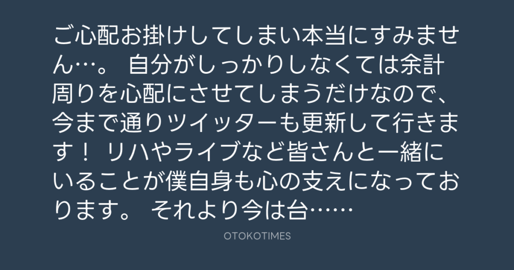 ご心配お掛けしてしまい本当にすみません…。 自分がしっかりしなくては余計周りを... -