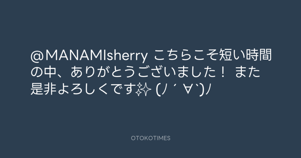 @MANAMIsherry こちらこそ短い時間の中、ありがとうございました! また是非よろし... -