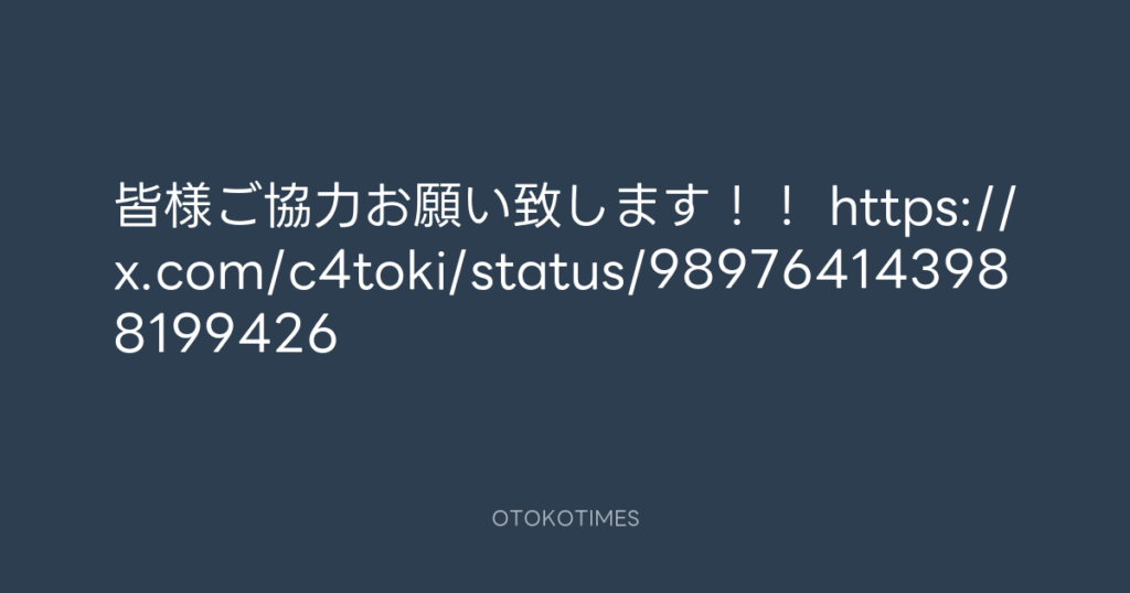 皆様ご協力お願い致します!! https://x.com/c4toki/status/989764143988199426 -