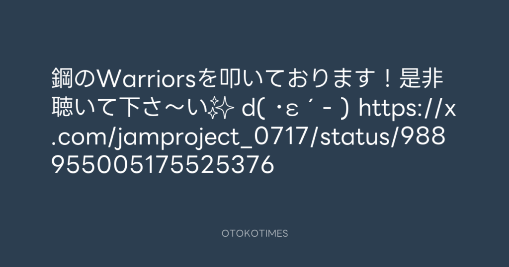 鋼のWarriorsを叩いております!是非聴いて下さ〜い✨ d( ・ε´- ) https://x.com/ja... -