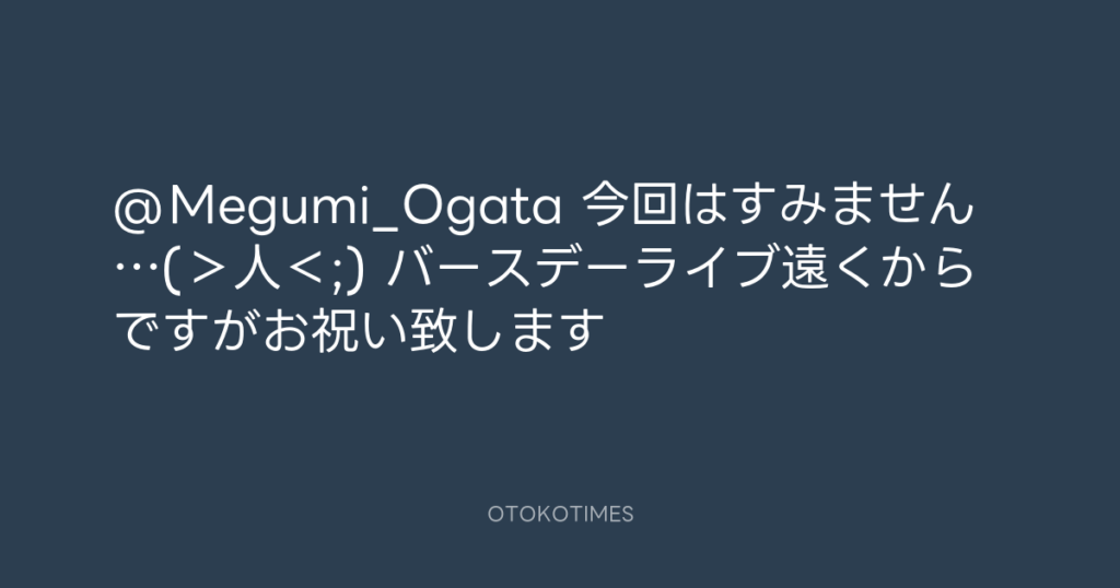@Megumi_Ogata 今回はすみません…(>人<;) バースデーライブ遠くからですがお祝い... -