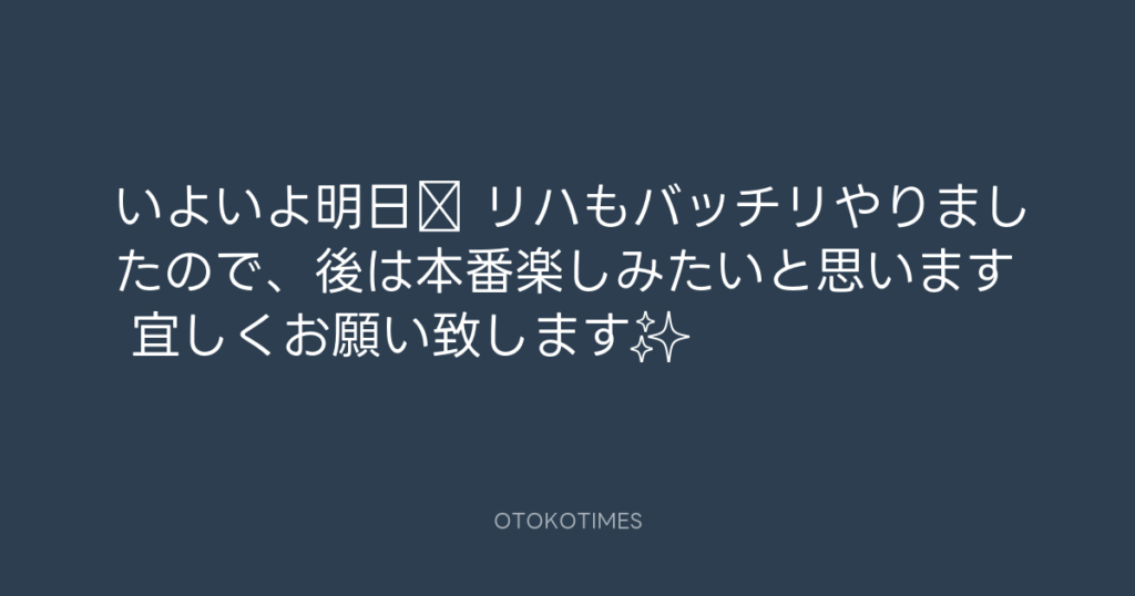 いよいよ明日‼️ リハもバッチリやりましたので、後は本番楽しみたいと思います👍 ... -