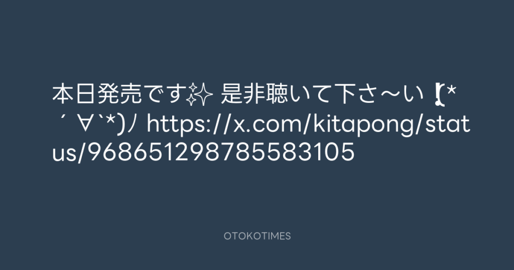 本日発売です✨ 是非聴いて下さ〜い❗️ (*´∀`*)ノ https://x.com/kitapong/status/9... -