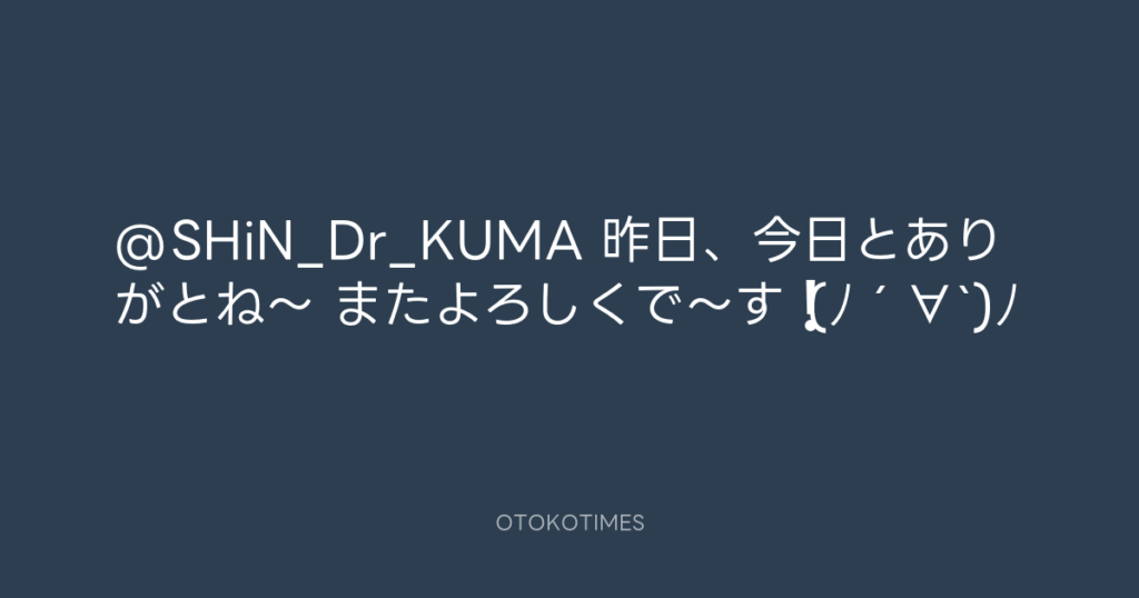 @SHiN_Dr_KUMA 昨日、今日とありがとね〜😄 またよろしくで〜す❗️ (ノ´∀`)ノ -