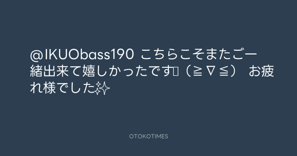 @IKUObass190 こちらこそまたご一緒出来て嬉しかったです♪(≧∇≦) お疲れ様でした✨ -