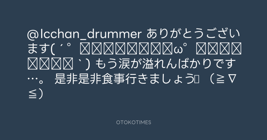 @Icchan_drummer ありがとうございます(´°̥̥̥̥̥̥̥̥ω°̥̥̥̥̥̥̥̥`) もう涙が溢れんば... -