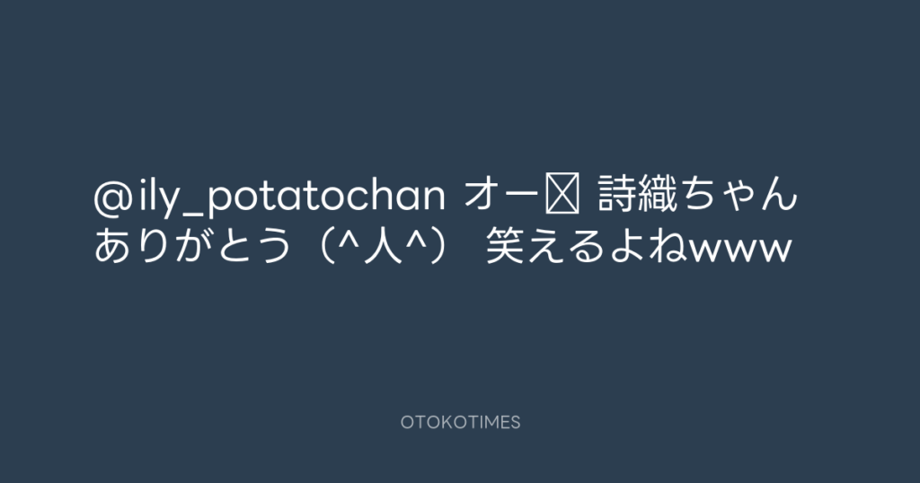 @ily_potatochan オー‼️ 詩織ちゃんありがとう(^人^) 笑えるよねwww -