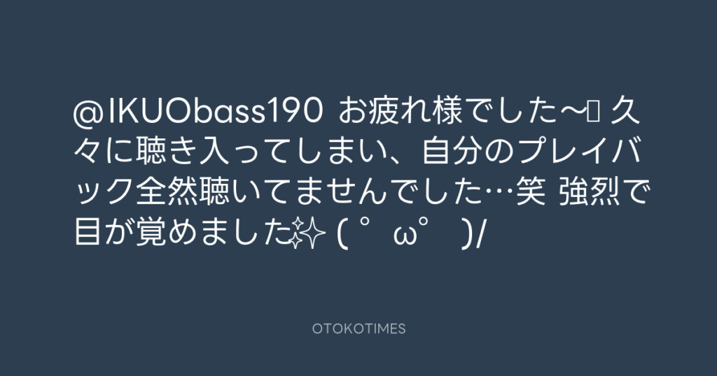 @IKUObass190 お疲れ様でした〜♪ 久々に聴き入ってしまい、自分のプレイバック全然... -
