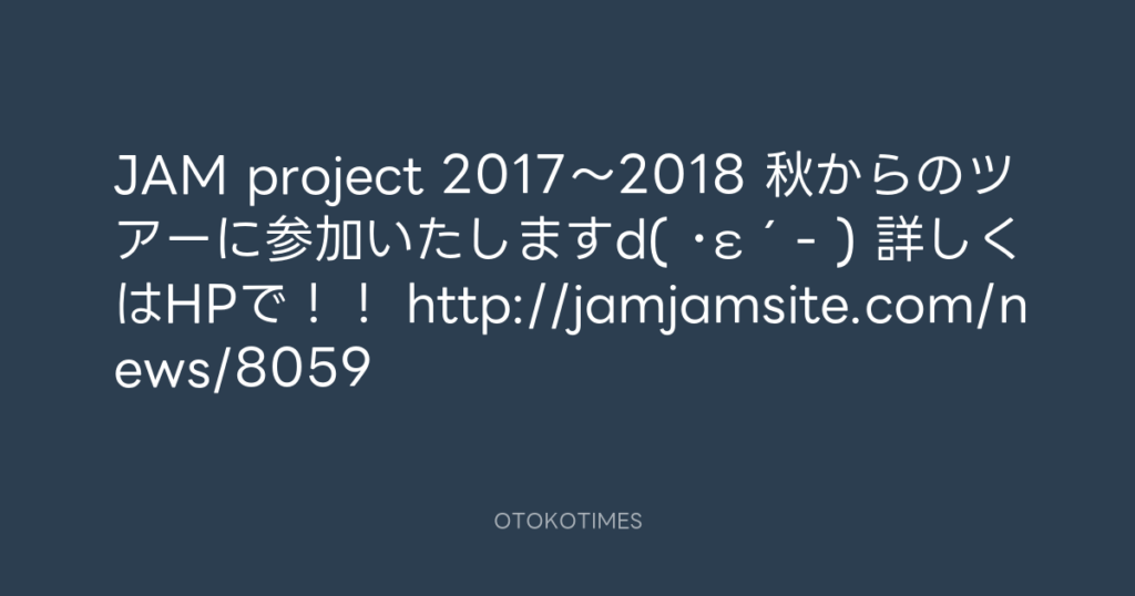 JAM project 2017〜2018 秋からのツアーに参加いたします💫d( ・ε´- ) 詳しくはHPで... -