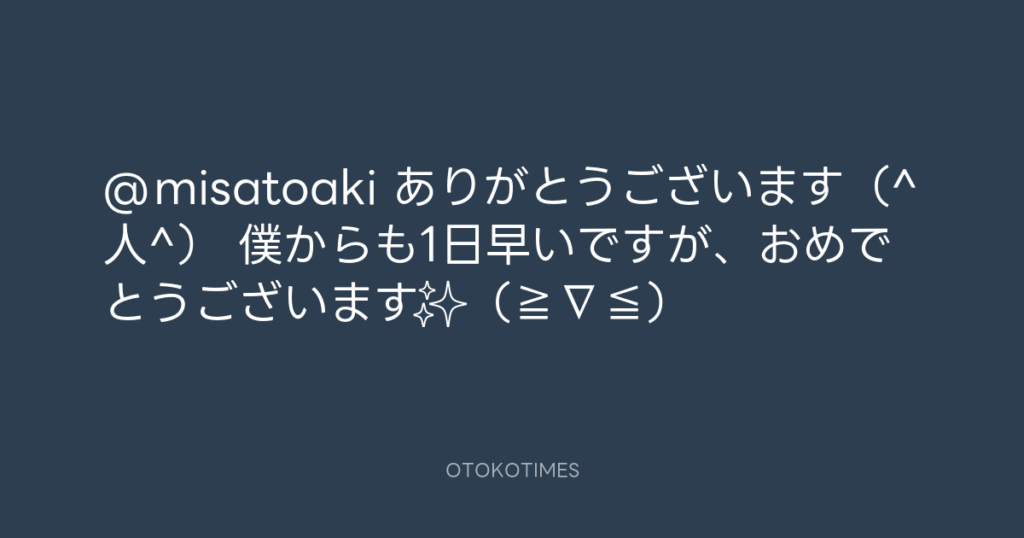 @misatoaki ありがとうございます(^人^) 僕からも1日早いですが、おめでとうござ... -