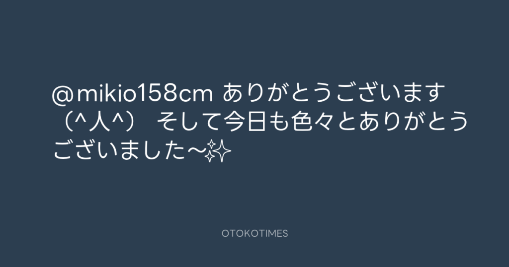 @mikio158cm ありがとうございます(^人^) そして今日も色々とありがとうございま... -