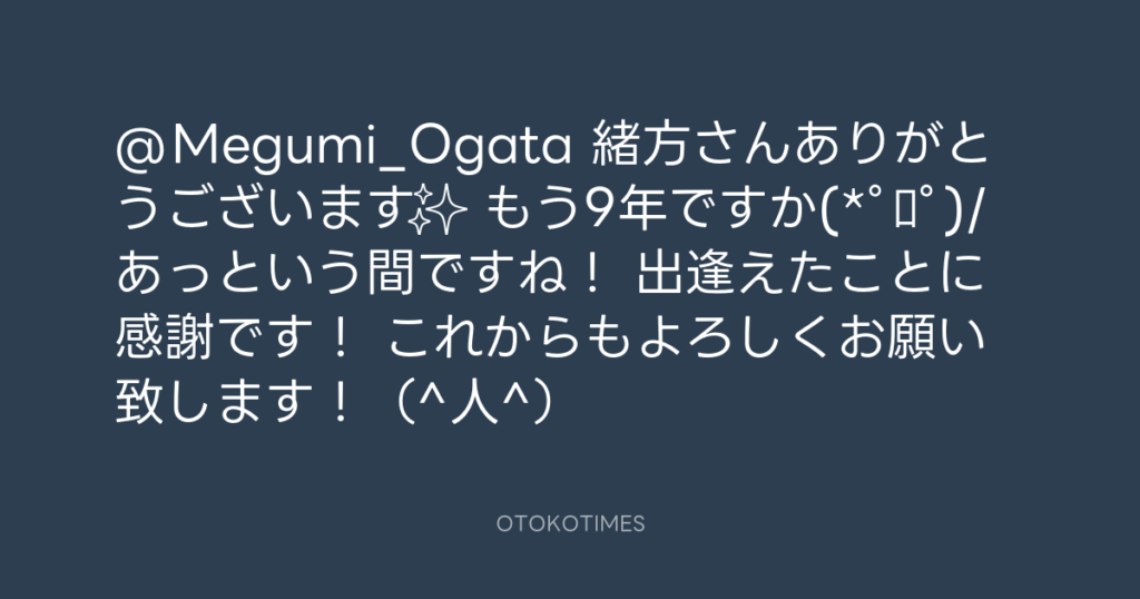 @Megumi_Ogata 緒方さんありがとうございます✨ もう9年ですか(*゚ロ゚)/ あっという... -