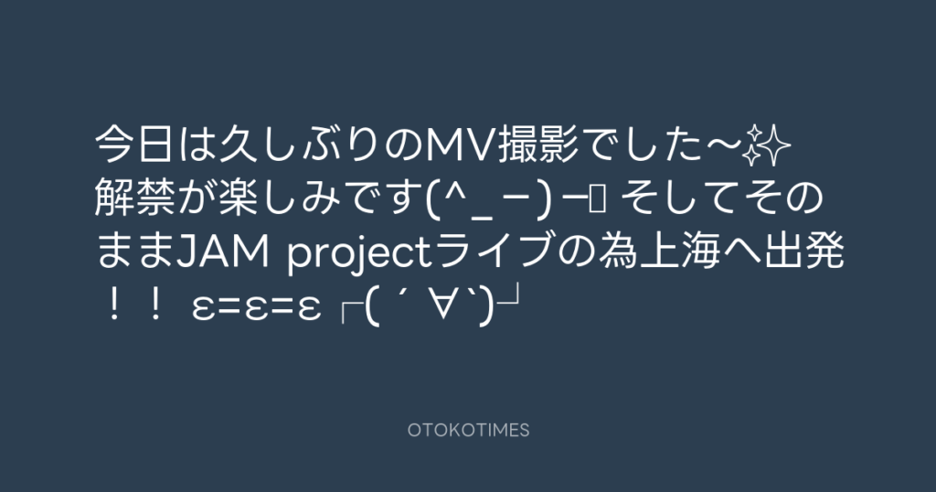 今日は久しぶりのMV撮影でした〜✨ 解禁が楽しみです(^_−)−☆ そしてそのままJAM pr... -