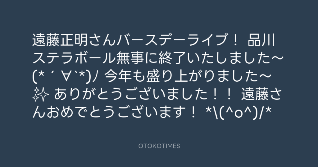 遠藤正明さんバースデーライブ! 品川ステラボール無事に終了いたしました〜(*´∀`*...