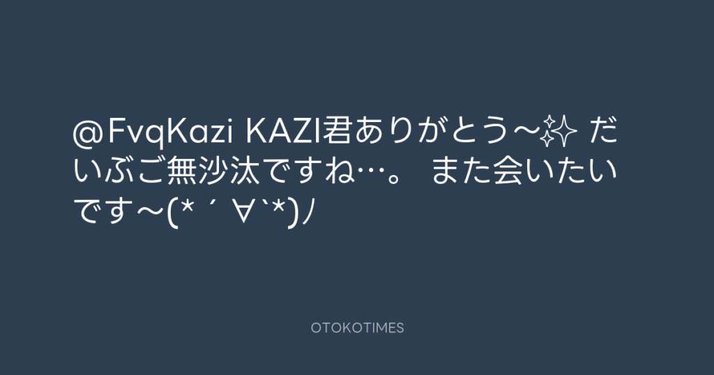 @FvqKazi KAZI君ありがとう〜✨ だいぶご無沙汰ですね…。 また会いたいです〜(*´∀`*)ノ -