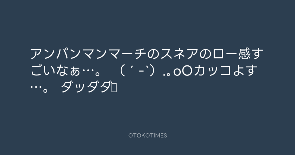 アンパンマンマーチのスネアのロー感すごいなぁ…。 (´-`).。oOカッコよす…。 ダッ...