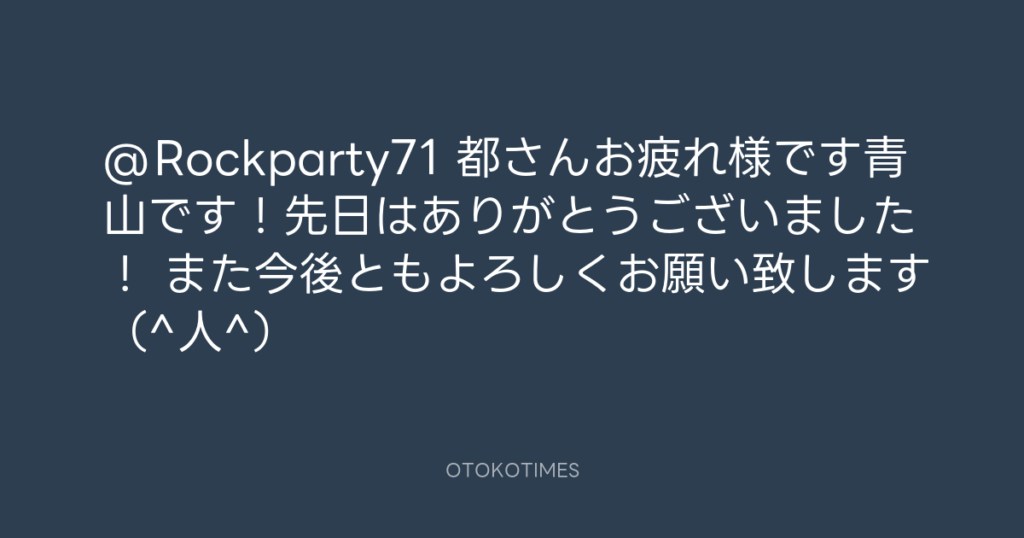 @Rockparty71 都さんお疲れ様です青山です!先日はありがとうございました! また... -