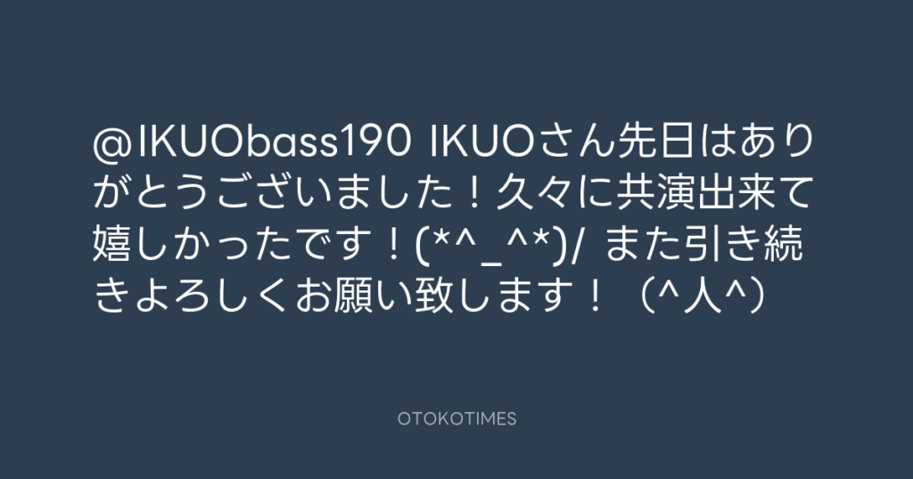 @IKUObass190 IKUOさん先日はありがとうございました!久々に共演出来て嬉しかった... -