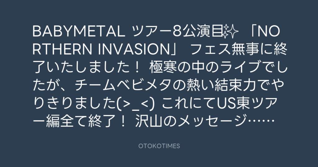 BABYMETAL ツアー8公演目✨ 「NORTHERN INVASION」 フェス無事に終了いたしました...