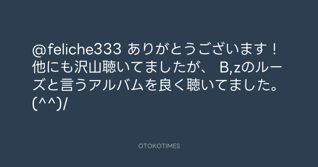 @feliche333 ありがとうございます! 他にも沢山聴いてましたが、 B,zのルーズと言... -