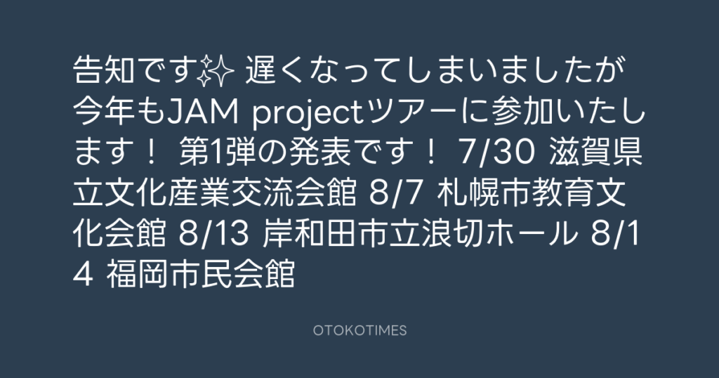 告知です✨ 遅くなってしまいましたが 今年もJAM projectツアーに参加いたします!... -