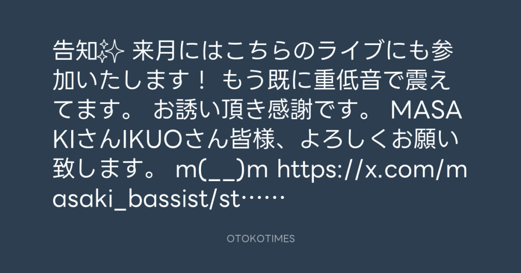 告知✨ 来月にはこちらのライブにも参加いたします! もう既に重低音で震えてます... -
