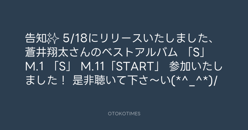 告知✨ 5/18にリリースいたしました、 蒼井翔太さんのベストアルバム 「S」 M.1 「... -