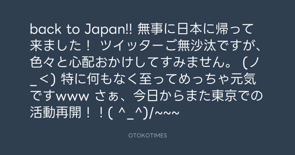 back to Japan!! 無事に日本に帰って来ました! ツイッターご無沙汰ですが、色々と... -