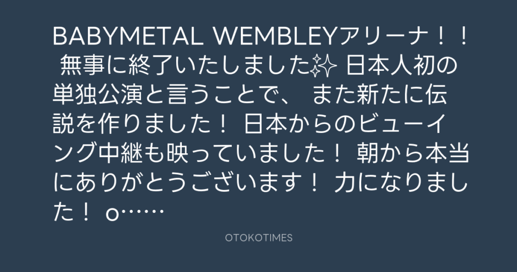 BABYMETAL WEMBLEYアリーナ!! 無事に終了いたしました✨ 日本人初の単独公演と言...