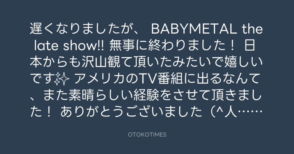 遅くなりましたが、 BABYMETAL the late show!! 無事に終わりました! 日本からも... -